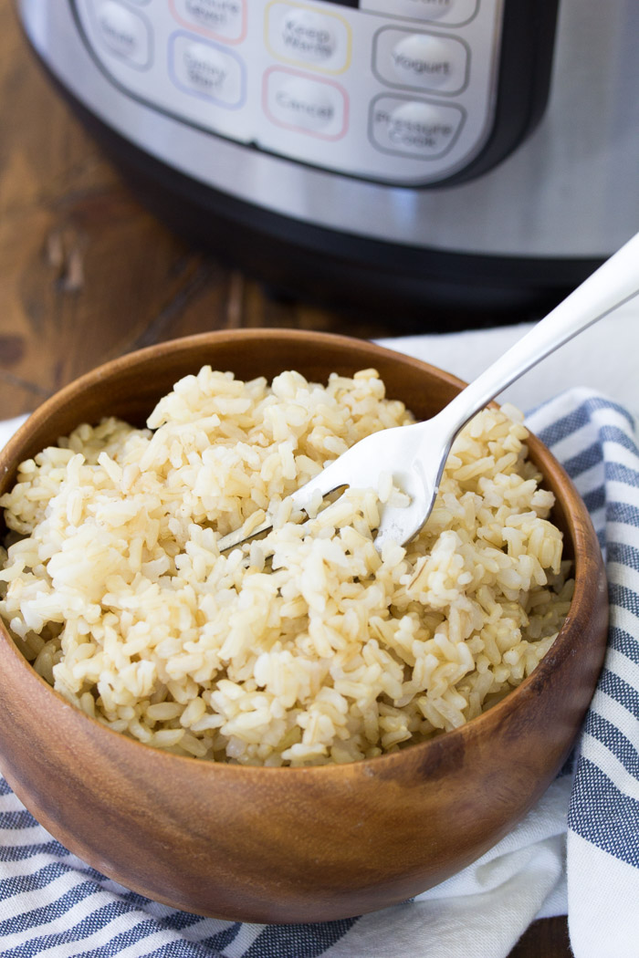 You can cook small or large batches of white or brown rice in your instant pot. For white rice, you will put 1 cup of rice and 1 cup of water into the instant pot and cook for 3 minutes with a natural pressure release until the pin drops. For brown rice, you will put 1 cup of rice and 1 cup of water into the instant pot and cook for 24 minutes with a natural pressure release until the pin drops. Feel free to double the recipe if needed.